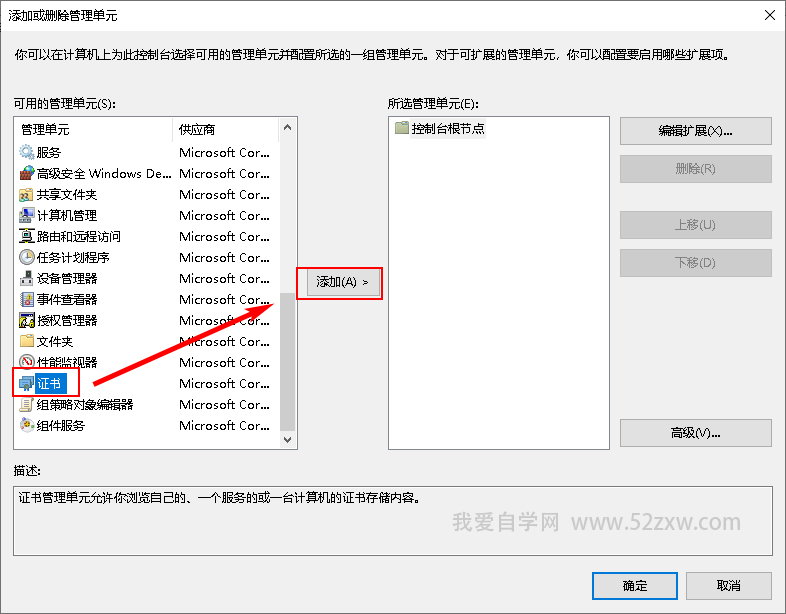 单击左下角开始菜单,搜索并打开运行对话框,输入mmc,单击确定。